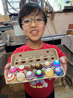 We experimented with many ways to hold the egg on the lathe, a rubber stopper modified to cradle both sides of the egg or a drilled out golf ball worked the best.
